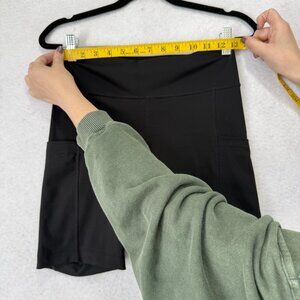 Features: Two drop-in side pockets for phone/essentials; wide supportive waistband; flat seams for comfort; mid-thigh length