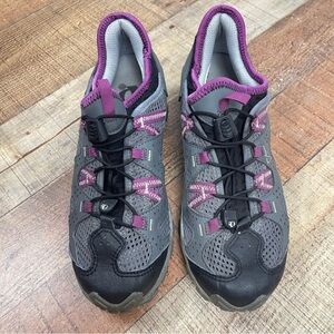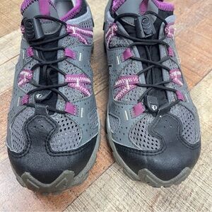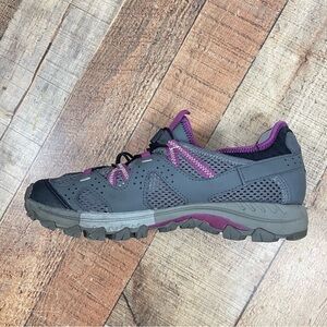 Step into comfort and style with these women's athletic shoes. Featuring a sleek gray and purple design, these shoes are perfect for any active lifestyle.