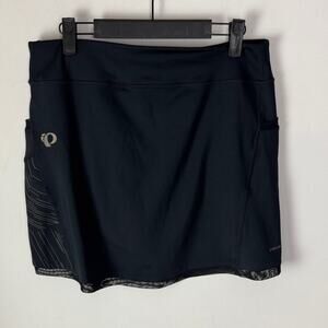 Gently Used Pearl Izumi Skirt. This is a women's large. Mostly black with some reflective accents on the side. Reflective Pearl Izumi logo on the back side. Two front pockets. No liner/not a skort. Cute for summer activities or sports! 78% polyester, 22% elastane.