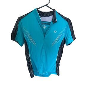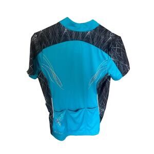 Pearl Izumi Women’s Cycling Jersey Large Teal Black Graphic Zip Back Pockets SS