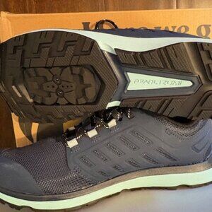 Pearl Izumi Women's X-Alp Canyon Size 8.5 Women's Biking shoes. Extremely versatile, this lace-up women’s cycling shoe makes the easy transition from hike-a-bike sections to pedaling. A composite shank through the midsole connects directly to SPD pedal systems and provides necessary stiffness to prevent foot fatigue while pedaling. Run shoe EVA provides comfortable cushioning off the bike and the recessed cleat design allows for natural walking performance.