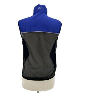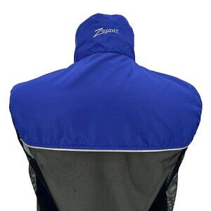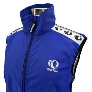 Pearl Izumi Zephrr Style# 4780 - Lightweight cycling vest - shade of blue. Full zipper down the front. Black sheer mesh fabric on the back side. Logo fabric strips on the shoulder with reflective edging. Logo stitched on the front. 100% Polyester.