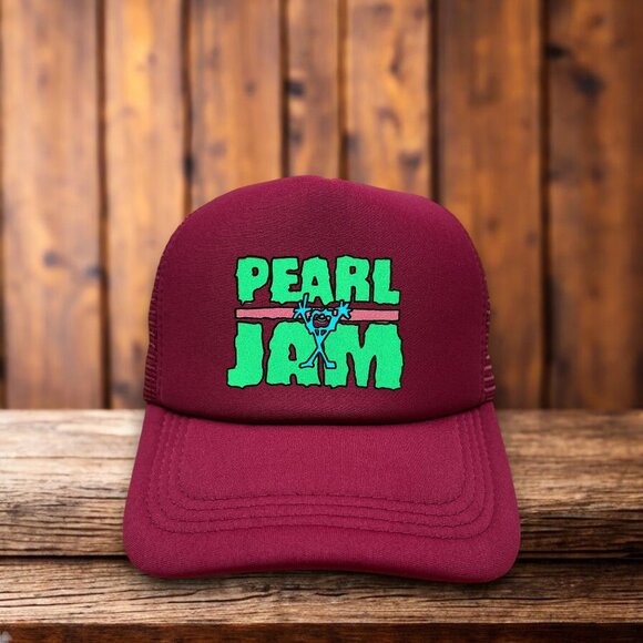 Pearl Jam Mens Trucker Hat Maroon Snapback Alternative Rock Grunge Ball Cap