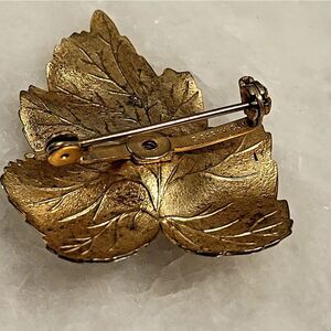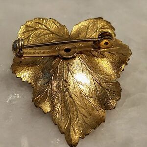 Vintage Signed Sarah Coventry, goldtone leaf brooch with center pearl.