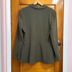 New with tags polyester/elastane blend stretchy 3 button blazer jacket in olive green. Women’s size US 16 but measurements taken flat are approximately: