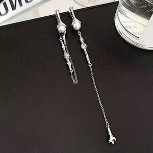 Pearl Long Drop Earring Women Asymmetric Fashion Design Jewelry Elegant Pearl