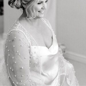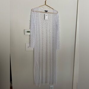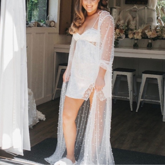 Gorgeous sheer tulle open robe adorned with pearls. Perfect for a bridal look! New with tags, never worn