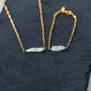Pearl Necklace & Bracelet Set Bundle Waterproof Jewelry Baroque Pearl Necklace