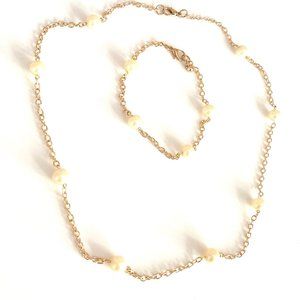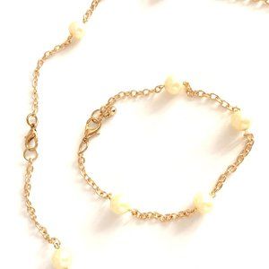 Pearl Necklace Cultured + Bracelet Gold Chain