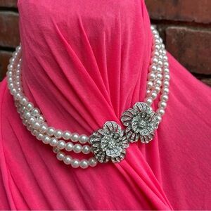 FAUX PEARL CHOKER NECKLACE WITH REMOVABLE MEDALLION PENDANT
