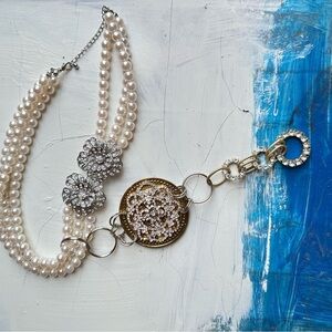 Pearl Necklace Medallion Convertible Assemblage Art Repurposed Pendant Handmade