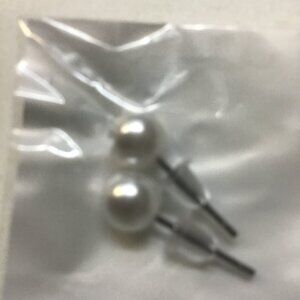1/4" white pearl studs. Silver post and clear fastener. New in package.