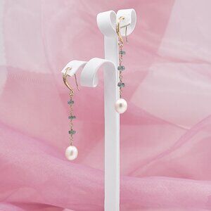 Pearl & Paraiba Tourmaline Earrings, 14K Gold Filled Hammered French Hooks