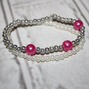 📏 Size: 6" (elastic stretch) 🎨 Color: Cream · Pink · Silver 💎 Details: Faux pearls · Beaded sparkle · Boutique polish