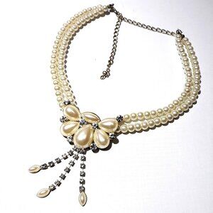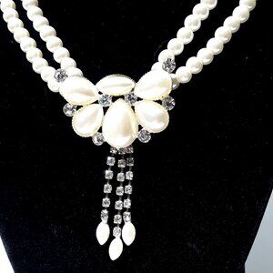 Pearl Rhinestones Necklace Choker Pendant Faux White Prong Set Wedding Prom