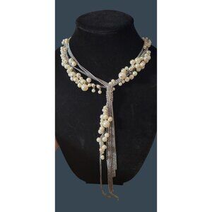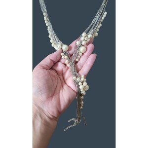 Elegant and versatile, this necklace combines lustrous pearls with sleek silver-tone chains. Ideal for adding a touch of sophistication to any outfit.
