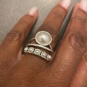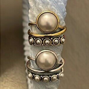 Pearl Statement Ring Multi Faux Pearl Band Retro Boho Y2K Festival Glam Stacked