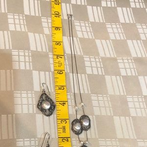 This necklace and pair of pierced earrings are light & delicate. The earrings will not weight down & hurt sensitive ears.