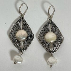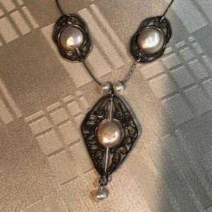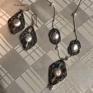 Pearl & Sterling Silver Necklace & Earrings by Israeli Artist YAM Yuval