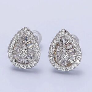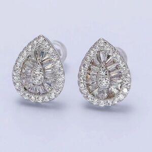 Pearl Tear Drop Sparkle Shinny white gold plated CZ New