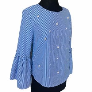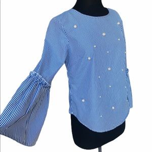 Stay classy and cool in this gorgeous Roommates Top. Pearls covered the front of the top and the embellished statement sleeves make this top a must have. Worn once. Size S