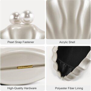 Features: This stunning seashell-shaped clutch is crafted from high-quality acrylic and metal, giving it a luminous, iridescent surface that catches the light beautifully. The magnetic closure keeps your essentials secure, while the detachable pearl chain allows for multiple styling options—wear it as a clutch, crossbody, or shoulder bag. Sized perfectly to hold your phone, lipstick, cards, and more, making it ideal for formal events.