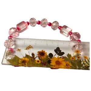 Beautiful handmade bracelet with glass beads and a sparkly rhinestone tube bead with one cultured pearl on each end.