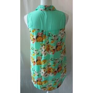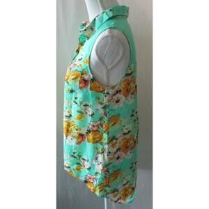 Pearl Women's Green Floral Print Sleeveless Button Front Blouse Size Medium