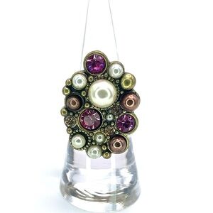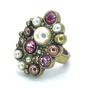Pearl and Pink Gemstone Cluster Cocktail Ring | Size 6