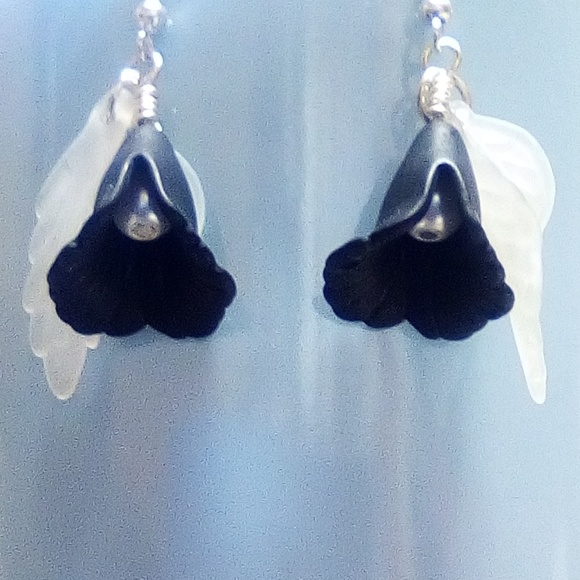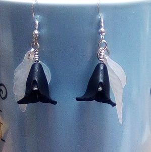 Dramatic Black and White Flower Earrings (Handmade by Four Seasons Designs)