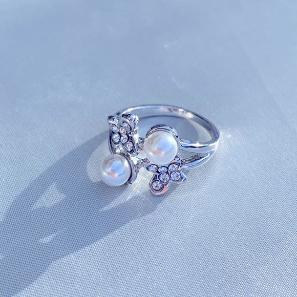 Pearl and Rhinestone Butterfly ring 🦋