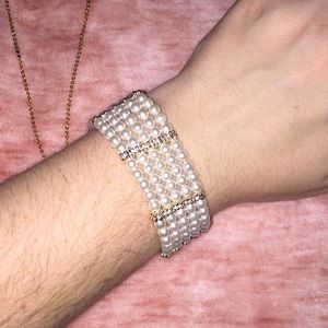 Can you tell me what the interior measurement is (not stretched) and are the pearls made of acrylic or are they heavier like glass beads? Thank-you