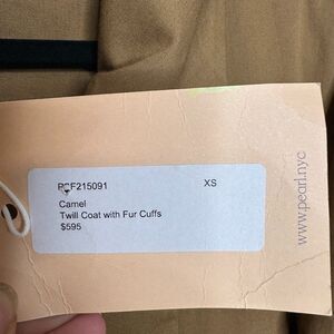Pearl by Lela Rose Camel Twill Coat with Fur Cuffs XS Vintage Inspired $595 NWT