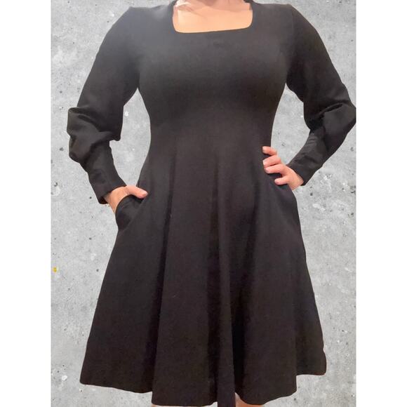 Sophisticated and flattering, this Pearl by Lela Rose dress is a timeless black essential with a modern, feminine silhouette. Crafted from a viscose-nylon-elastane blend, it offers a structured yet comfortable fit that moves with you. The square neckline, long sleeves, and fit-and-flare skirt create an elegant, tailored look perfect for work, events, or evenings out.
