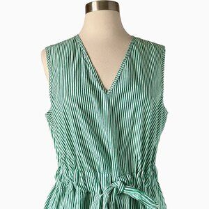 Pearl by Lela Rose Green White Stripe Cotton Dress Bow Tie Waist L