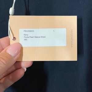 Pearl by Lela Rose Navy Blue Ponte Pearl Sleeve Dress Lg NWT Boat Neck Shift
