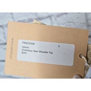 Pearl by Lela Rose Oxford Chambray Open Shoulder button up blouse size small 0. New with tags.