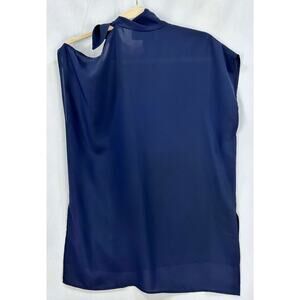 Pearl by Lela Rose Sheer Tie Neck Asymmetric Halter Tank – Size XS – Navy Blue