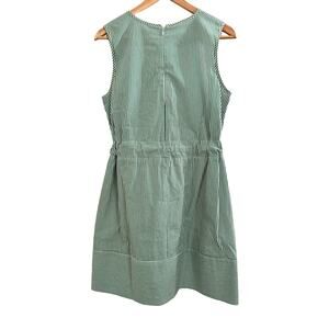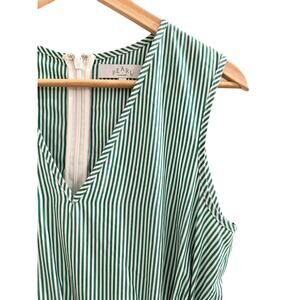 Pearl by Lela Rose Stretch Cotton Cottage Dress Green White Stripe Classy Preppy