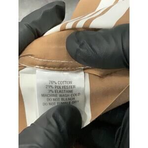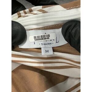 The Pearl by Lela Rose Striped Poplin A-Line Dress in size M features a classic camel and white striped pattern, short sleeves, and a flattering A-line silhouette. This dress is made from high-quality materials and is fully lined for added comfort and structure. Perfect for both casual and formal occasions, this dress is a timeless addition to any woman's wardrobe. The combination of the brand, pattern, and style makes it a versatile and stylish choice for any season.