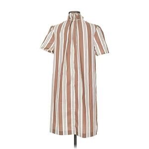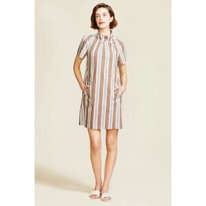 Pearl by Lela Rose Striped Poplin A-Line Dress Short Sleeve Camel White M