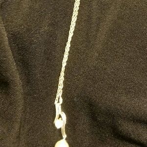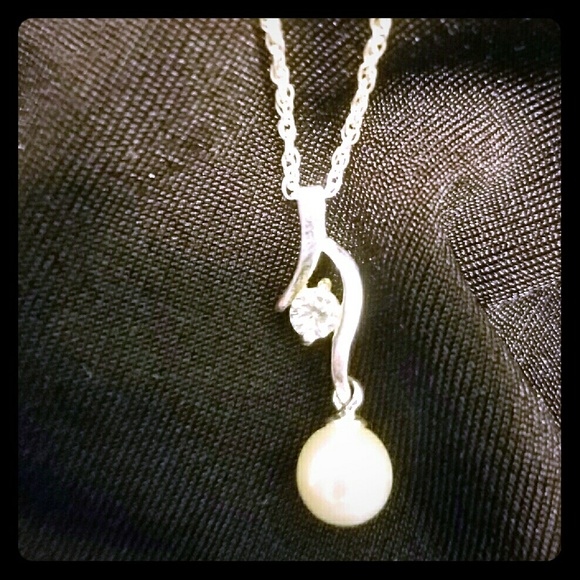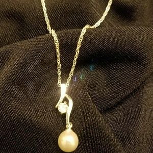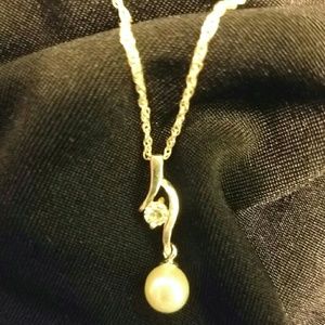 Brand new pearl dangle necklace. Real silver, a large cubic zirconia and an iridescent white pearl(pulled from the oyster myself).Makes a beautiful gift.