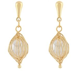 Elegant and timeless, these earrings feature a luminous pearl set within a delicate wire oval design accented with ball details. Crafted with 18K gold-filled brass, they offer both durability and shine while remaining hypoallergenic for comfortable all-day wear. The post-back closure ensures a secure fit.