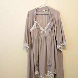 2 piece Kimono style in good pre-owned condition. there's a couple of stains on the robe.