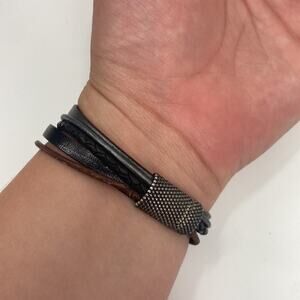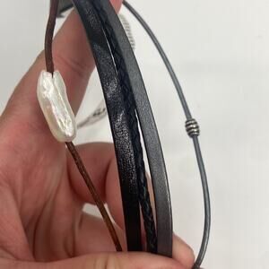 Pearl leather multi strap bracelet