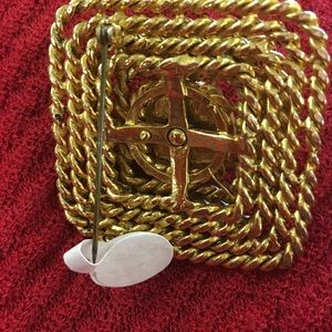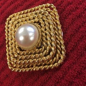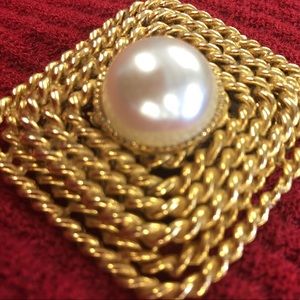 A beautiful square vintage brooch, gold tone and faux pearl a masterpiece! 3 inches***note normal wear for a vintage piece.