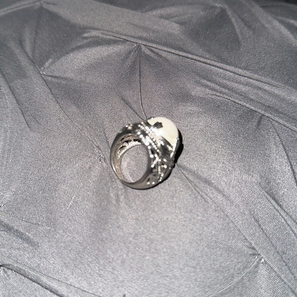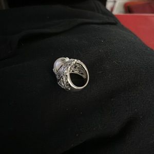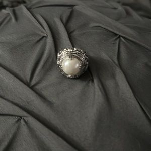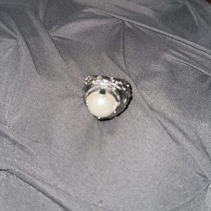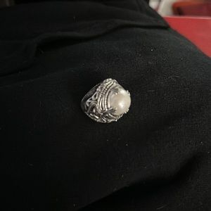 Heavy duty vintage silver ring with big pearl pendent in the middle!