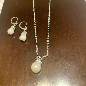 Pearl and sterling silver necklace and earrings set; worn once in my sisters wedding
