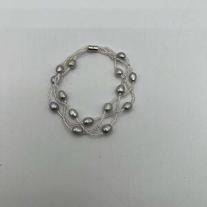 Pearl 2 PC set Earrings Necklace 7-8 mm SilverTone Magnetic Heritage VTG 80’s