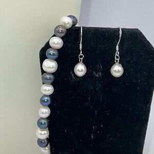 Pearl 3 PC Set Earrings Necklace Bracelet SilverTone Classic Heritage VTG 80’s